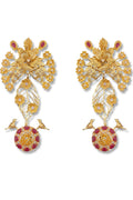 Statement floral earrings embellished with semi-precious ruby stones, white zircons and fresh water pearls