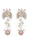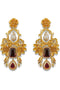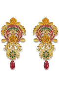 Statement earrings embellished with semi-precious ruby stones, green emeralds, champaign zircons and fresh water pearls