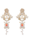 Statement earrings embellished with semi-precious Pink Topaz, white zircons and fresh water baroque pearls