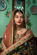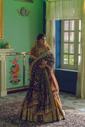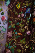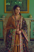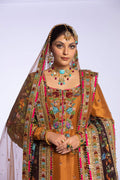 Introducing our enchanting outfit that exudes timeless elegance! The short shirt, crafted in a rich brown raw silk, pays homage to old-school charm with its resham work on the neckline and sleeves. The shirt is adorned with a captivating booti spray all over, adding a touch of allure and sophistication. Accompanying the shirt is a mesmerizing brown raw silk lehenga. It features our signature lappa gotta and multi-chata pati finish, creating a beautifully traditional and intricate design. To complete the ensemble, we have a stunning brown net dupatta. The dupatta boasts a four-sided border adorned with intricate zardozi work, complemented by delicate reham boti and sequence spray. The dupatta is finished with delicate metal and gotta detailing, adding a touch of opulence. To add a touch of grandeur, we offer a deep brown Thousand Wishes pure organza shawl. This shawl features intricate tilla and resham work, forming a four-sided geometric handmade border. The shawl is finished with delicate metal accents, adding a regal touch.