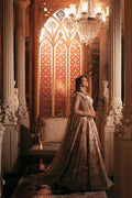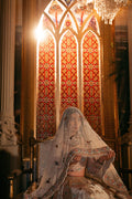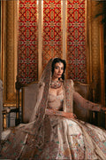 Steal the spotlight on your wedding day with this exquisite bridal lehenga choli set. The goshi colored tissue fabric lehenga boasts a stunning landscape resham embroidery, further embellished with intricate resham zardozi work featuring naqshi dabka and crystals. The goshi colored net fabric choli is heavily embroidered and embellished with resham zardozi work, creating a cohesive and glamorous look. Completing the ensemble is a goshi colored net dupatta, also adorned with rich resham embroidery and zardozi work, ensuring you leave a lasting impression on your special day.