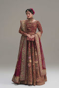 A masterpiece of grace and tradition, Menazar enchants with its exquisite red net lehenga choli, featuring a structured corset adorned with intricate embroidery and handwork embellishments. Paired with an ethereal net dupatta with a beautifully adorned border, this ensemble embodies regal sophistication