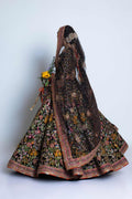 FahadHussayn presents a breathtaking black Lehnga Choli embellished with colorful different-sized crystals. It is adorned with very fine hand and zari work paired with an equally phenomenal dupatta.