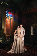 Turn heads on your wedding day with this one-of-a-kind bridal lehenga choli set in a captivating mouse color. The net base fabric is adorned with a mesmerizing combination of resham embroidery and shimmering sequins, further elevated by heavy zardozi work featuring naqshi and dabka. This intricate embellishment technique creates a stunning interplay of light and texture, ensuring you leave a lasting impression. The ensemble includes a perfectly matching choli and dupatta, both featuring the same exquisite embroidery and zardozi work, for a cohesive and unforgettable look.
