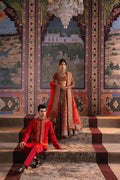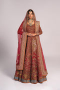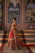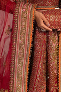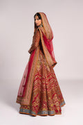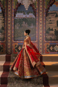 The organza fabric lehenga boasts a stunning combination of resham embroidery and intricate zardozi work details, creating a captivating visual texture. The rich red tone adds a touch of timeless elegance, while the expert craftsmanship ensures a truly unforgettable piece. The matching choli and dupatta beautifully complement the lehenga, featuring the same exquisite resham embroidery and zardozi work details.