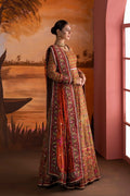 Even the rainbows enjoy her ease! A pretty Rust Orange Anarkali adorned in zardozi, gotta & handmade silk threads along with net base dupatta embellished with four side border. A perfect fit for your blazing day!