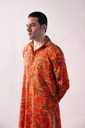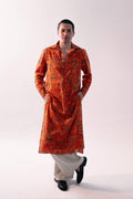 The Orange Gaba Printed Kurta features an exquisite and lively print that embodies the spirit of celebration. The bold orange hue combined with intricate patterns creates a striking and festive look. A Gaba kurta, known for its intricate texture, pairs well with trousers in a similar or slightly contrasting fabric to maintain balance.