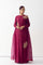 Print Museum's festive wear for Spring Summer '23 brings elegant silk series featuring 'Afsaana e Nagri', an epitome of elegance in Wine color adorned with a heavy hand and machine work on the neckline. Crystals and sitaras on the dress compliment the dress with a luxurious sharara and dupatta.