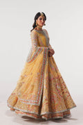 Bahar shines in a luminous sunlit yellow, adorned with intricate floral embroidery, delicate resham work, and subtle shimmering accents. Finished with a richly detailed hem and an airy dupatta framed in ornate borders, it’s the perfect choice for mehndi celebrations, daytime weddings, and festive gatherings—radiating effortless charm with a heritage touch.