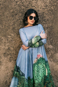 A refined lawn drape shirt, crafted from premium-quality fabric and adorned with elegant digital printing, inspired by miniature landscapes with rainy skies in sophisticated hues.