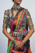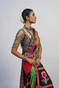 Modern Indian cut saree blouse with heavy embellishment . Crafted from premium digital printed lawn fabric, this exquisite blouse features a contemporary Indian cut and is adorned with intricate embellishments. Paired with a luxurious lehenga crafted from silk and a sheer net dupatta, this ensemble offers a perfect blend of tradition and modernity.