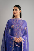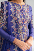 Color: Purple Product Description: A stylish A-line shirt featuring a gently flared silhouette, adorned with intricate detailing around the neckline and biceps, complemented by a four-sided scalloped dupatta. Stitched Includes: • Shirt ( Fabric : Raw Silk 60 Gram | Length : 54 inches ) • Straight Pant ( Fabric : Raw Silk 60 Gram | Length : 41 inches ) • Dupatta ( Fabric : Net | Length : 3 yards ) Un-stitched Includes: • Raw silk for panel shirt 5 yards • Raw silk for pants 3 yards • Net dupatta 3 yards • Embroidered and zardozi work patch for neckline 1pc and biceps 2 pc • Buttons 5 pc • Pk Silk for body lining 2 yards • Zip 1 pc Shipping Time: 4 weeks Model: Height 5'8'' | Size Small