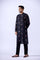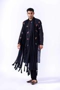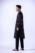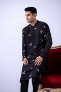 Birds shape Embroidered karandi fabric oversized kurta paired with Korean raw silk pants.