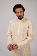Product Description: Kamyar is a Floral Self-Resham Embroidered Chikankari Cotton Kurta, paired with Fixed Waist Straight-Cut Pants and a Belt. This kurta showcases delicate resham floral embroidery, highlighting the exquisite chikankari on luxurious, breathable pure cotton