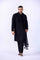 A striking black chiffon kurta adorned with exquisite black zardozi embroidery along the neckline and elegantly lined with chiffon on the front panel. This sophisticated ensemble is paired harmoniously with korian raw silk pants, creating a seamless blend of style and comfort. Completing the look is a chiffon patka featuring a beautifully embroidered border and charming tassels, adding a touch of grace and elegance to the outfit.