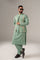Green kurta in cotton with embroidered spray paired with matching pants, open Waistcoat which has full embroidery on the front in same color family