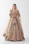 Sarmon is a gorgeous mehndi-colored lehnga choli rendered with vibrant embroidery and crystals via adda and hand work. It is paired with a net dupatta bordered on all four sides with the same embroidery making it look absolutely majestic for a wedding.